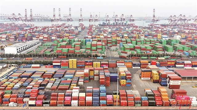 山东港口青岛港外贸集装箱码头(无人机照片)。 新华社发