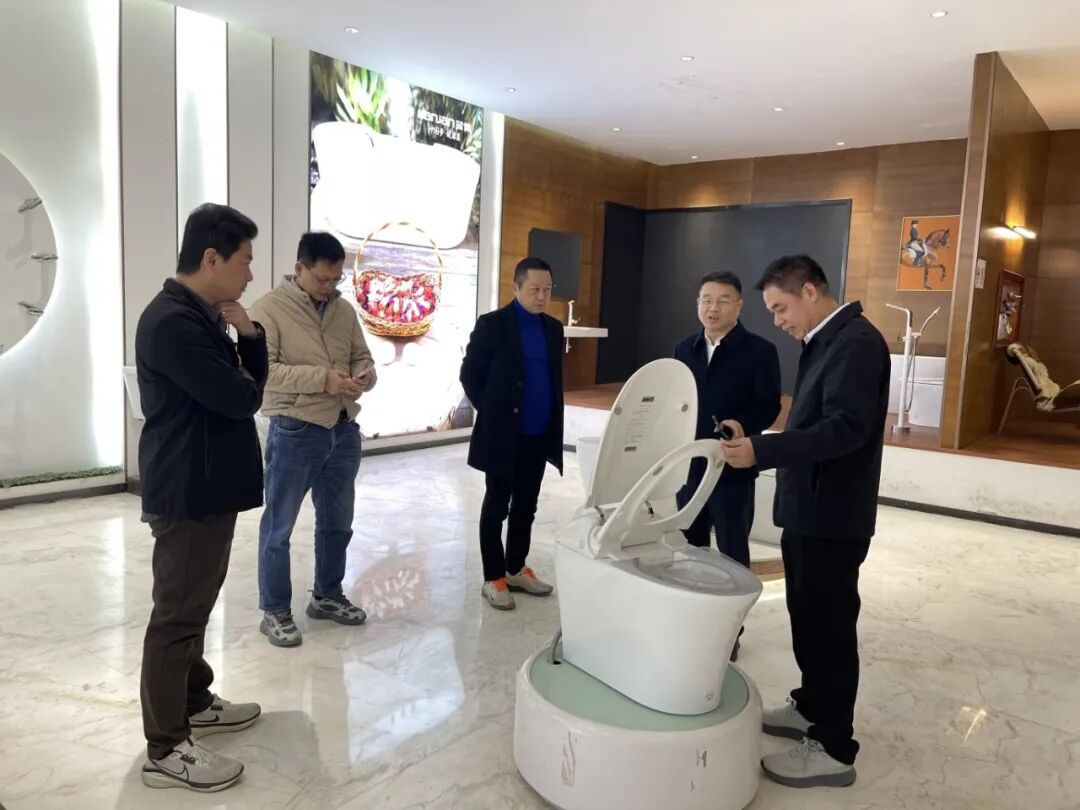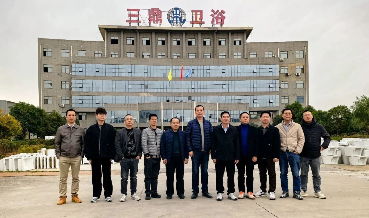 17日上午代表团首站走进三鼎卫浴,深入车间一线,详细调研其陶瓷产品的专业制造体系与核心技术优势;随后相继走访汇泉、九博、华硕三家浴室柜工厂,实地考察浴室柜产品的设计理念、生产工艺及流程特点,直观感受企业在产品品质把控上的实践经验。